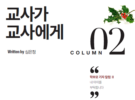 ù°, Æò»ý ¼±»ý´ÔÀ̶ó´Â Æä¸£¼Ò³ª¸¦ ¾²°í »ì¾Æ°¥ ³ª¿¡°Ô ¡®³ª ÀÚ½ÅÀ» ´õ »ç¶ûÇÏ¶ó¡¯°í ¸»ÇØÁÖ°í ½Í´Ù. ±³À°Àº »ç¶û ¾øÀÌ´Â ±Ùº»ÀûÀÎ º¯È­¿Í ¼ºÀåÀ» ÀÌ·ï³¾ ¼ö ¾ø´Â Ưº°ÇÑ ¿µ¿ªÀ̶ó°í »ý°¢ÇÑ´Ù. ¿À´Ã³¯ ¹è¿òÀÇ Åë·Î¿Í Áö½ÄÀ» Àü´ÞÇÏ´Â ¸Å°³Ã¼´Â ´Ù¾çÇØÁ³À»Áö ¸ô¶óµµ ÇлýµéÀ» ÇâÇÑ ÀÌÇØ¿Í ¹ÏÀ½ÀÌ ¾ø´Ù¸é Á×Àº Áö½ÄÀ» Àü´ÞÇÏ´Â °Í¿¡ ºÒ°úÇϱ⠶§¹®ÀÌ´Ù. ½Ç¿ëÀûÀÎ ¾²ÀÓ¿¡ ¸Ó¹«´Â Áö½ÄÀº °áÄÚ Å¸Àο¡°Ô ¼±ÇÑ ¿µÇâ·ÂÀ» ¹ÌÄ¥ ¼ö ¾ø´Ù. ±×·¯¹Ç·Î ¡®ÁøÂ¥ ±³À°¡¯À» À§Çؼ­´Â ÀڽŰú Àο¬À» ¸Î´Â ¾ÆÀ̵é°ú »Ä¼Ó ±íÀÌ Çϳª°¡ µÇ¾î ´À²¸¾ß ÇÑ´Ù. ±³»ç·Î¼­ÀÇ ÀÚÁ¸°¨ÀÌ Èçµé¸®Áö ¾ÊÀ» ¶§ ±³À°À» ÅëÇØ ¾ÆÀ̵éÀÇ ÀÚÁ¸°¨µµ ÁöÄѳ¾ ¼ö ÀÖÀ¸¸®¶ó »ý°¢ÇÑ´Ù.