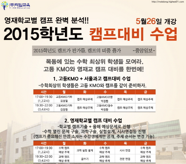Á¾ÇÕ±³À°±â¾÷ ¢ßŸÀÓ±³À°(´ëÇ¥ À̵¿Áø)ÀÌ ¿î¿µÇÏ´Â ÃÊÁß°í Á¾ÇÕÇпø ÇÏÀ̽ºÆ®°¡ 2015Çг⵵ ¿µÀçÇб³ Ä·ÇÁ ÀüÇüÀ» ¾ÕµÐ ÇлýµéÀ» À§ÇÑ ‘¿µÀçÇб³ Ä·ÇÁ ´ëºñ Ư°­’À» ½Ç½ÃÇÑ´Ù.